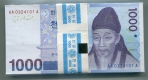 한국은행 다1000원권 다발(3차 퇴계이황)(특A급)AA0324101A 미사용품